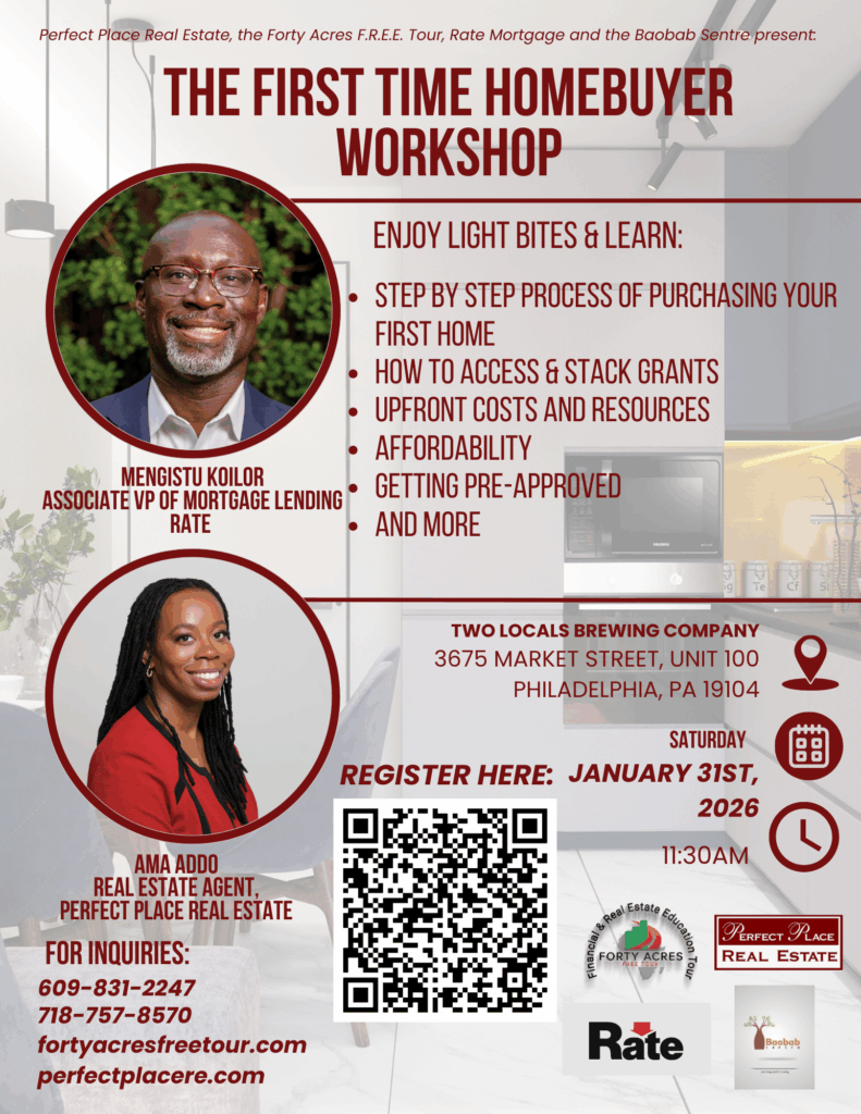 First Time Homebuyer Workshop, hosted by Forty Acres F.R.E.E. Tour, the Baobab Sentre, Perfect Place Real Estate, Rate, Two Locals Brewery