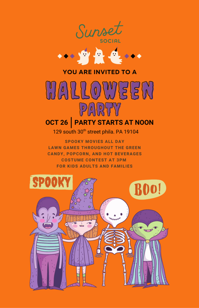 Sunset Social is getting in on the Halloween Fun above the clouds! Come by the rooftop lounge for spooky movies all day, lawn games on the green, candy, popcorn and more! Costume contest at 3pm – open to all ages.